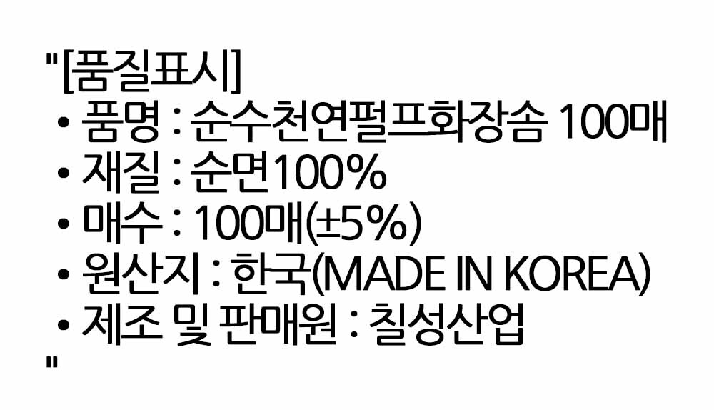 표백제 형광물질을 사용하지 않은 순수 화장솜 100매