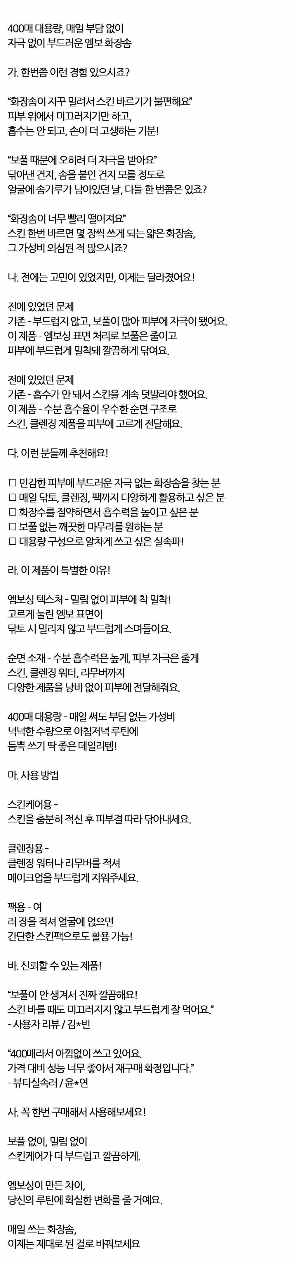 닦토시 밀리지않고 부드럽게 스며들어요 화장솜 400매