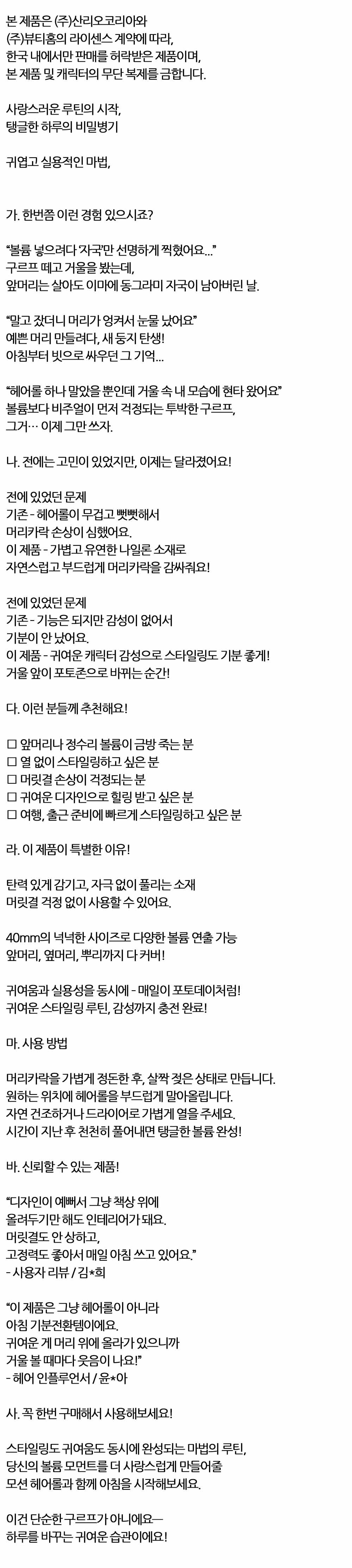 고데기 없이도 충분한 스타일링 시나모롤 헤어롤 40mm