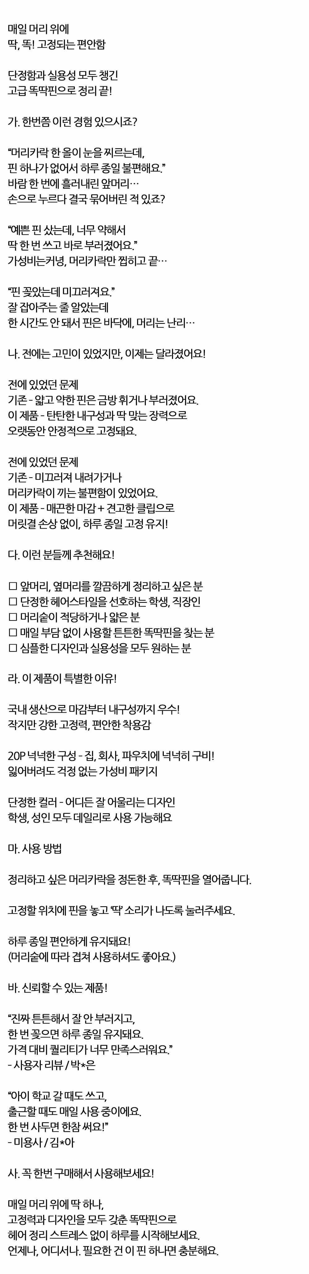 앞머리 옆머리를 단정하게 정리 똑딱핀 대 10P 5봉