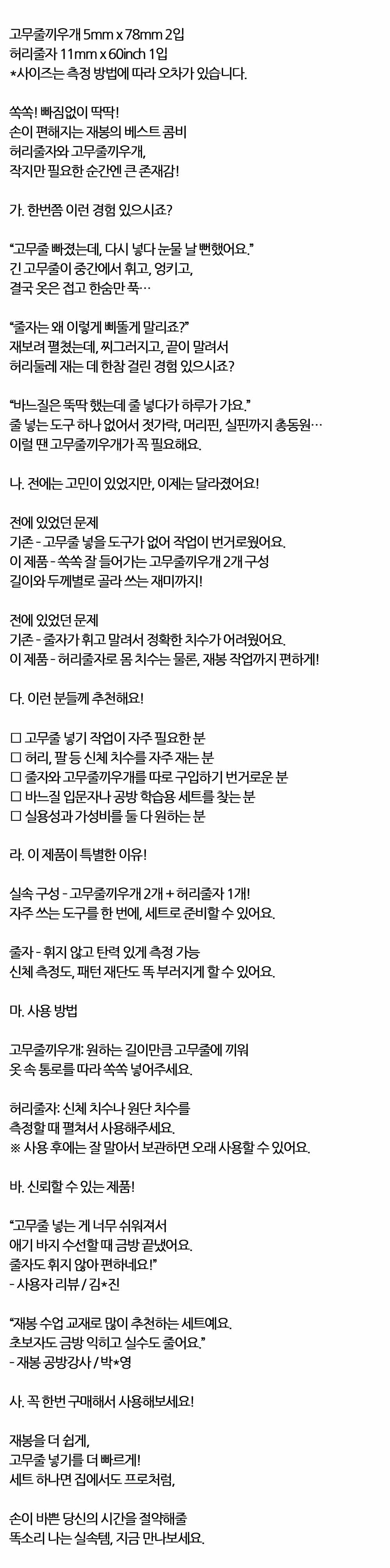 고무줄 넣는 게 쉬워서 수선 금방 끝냈어요 줄자 세트