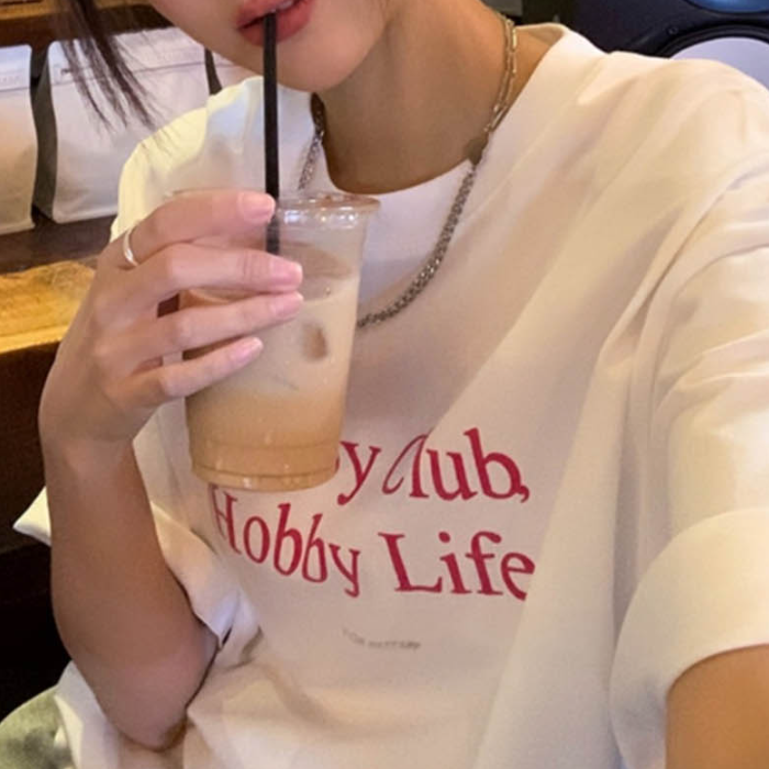 캐쥬얼 스타일 오버핏 티셔츠 영문 레터링 반팔티