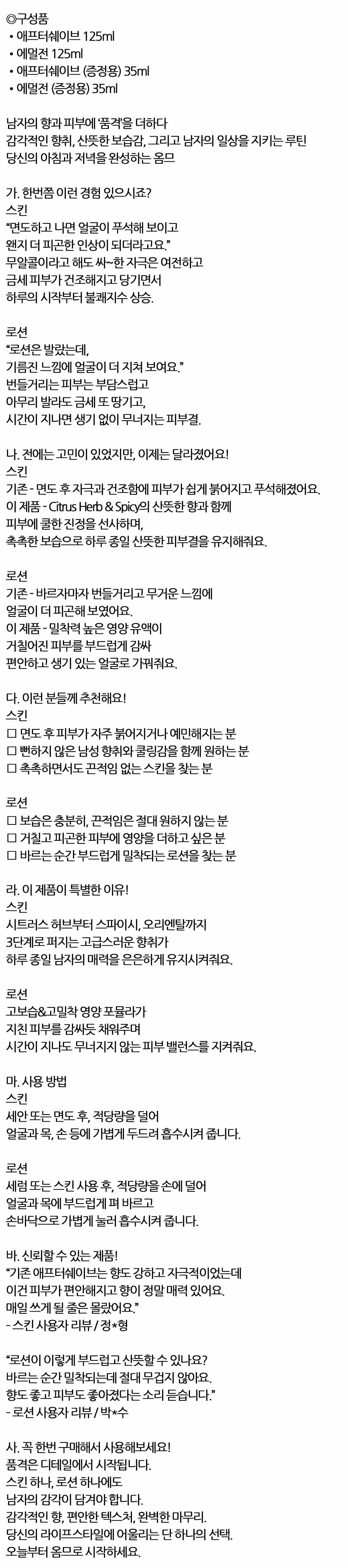남자의 향과 피부에 품격을 더하다 옴므 남성 2종세트