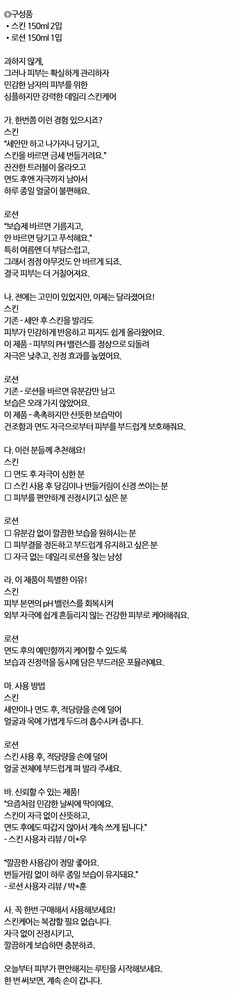 민감한 남자 피부를 위한 관리 남성 스킨2 로션1 세트