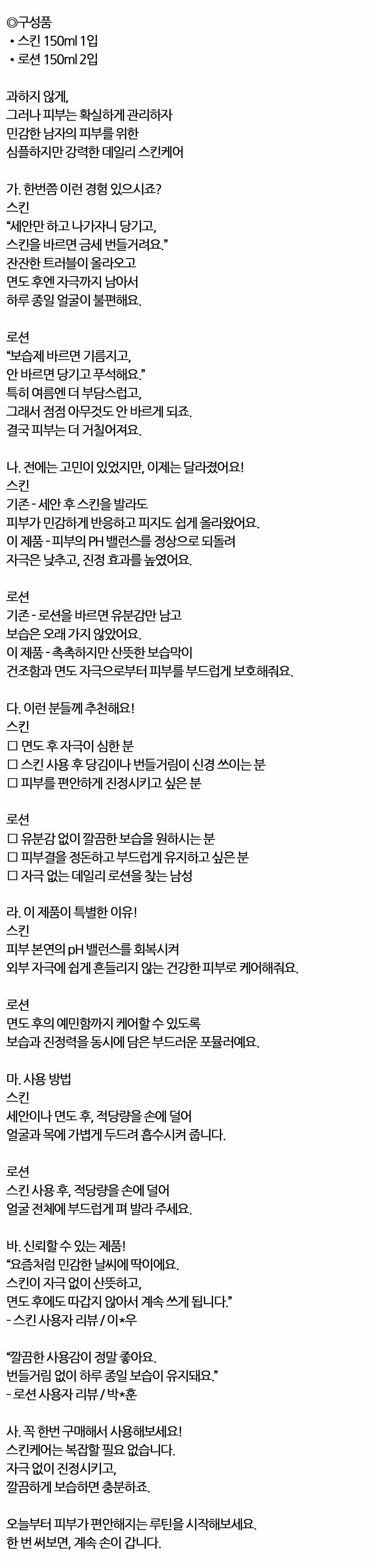 과하지않게 확실하게 관리하자 남성 스킨1 로션2 세트