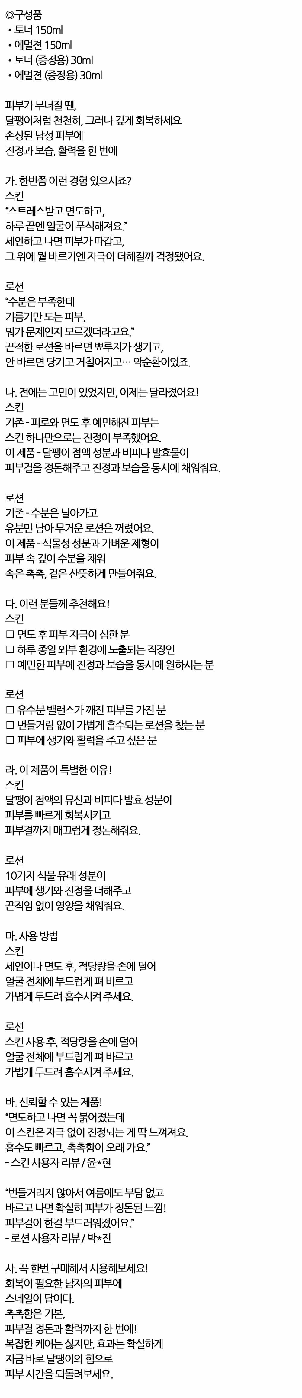 달팽이의 힘 피부 시간을 되돌려보세요 남성 2종세트