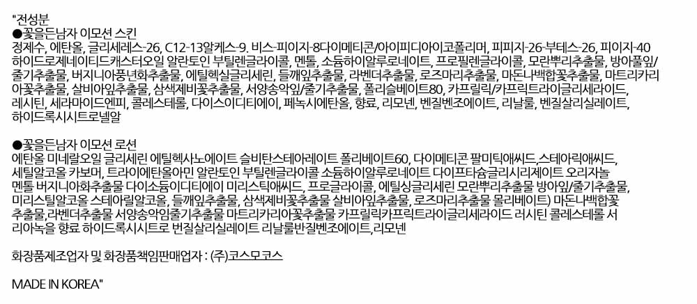 감성적인 향기 허브와 꽃 보습 남성 스킨2 로션1 세트