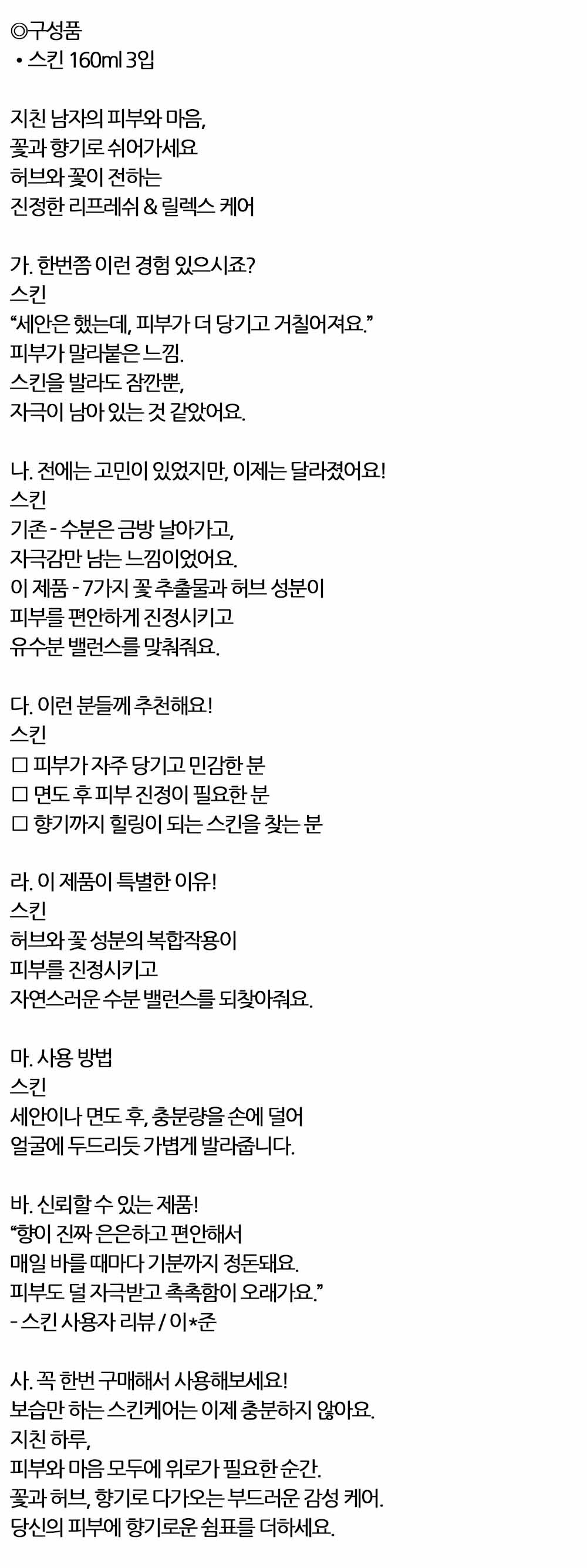 지친 남자피부 꽃과 향기로 쉬어가세요 남성 스킨 3입