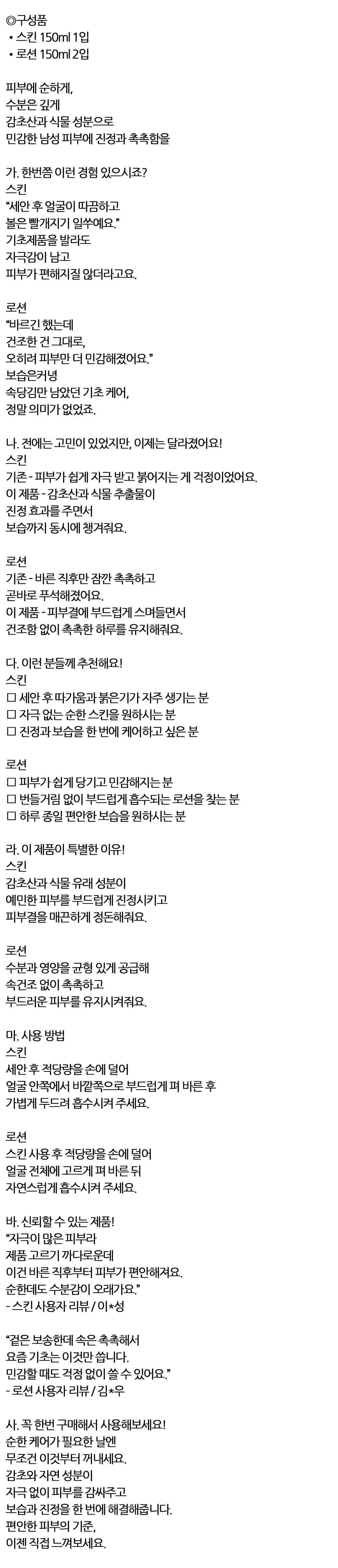 진정보습 한번에 해결해줍니다 남성 스킨1 로션2 세트