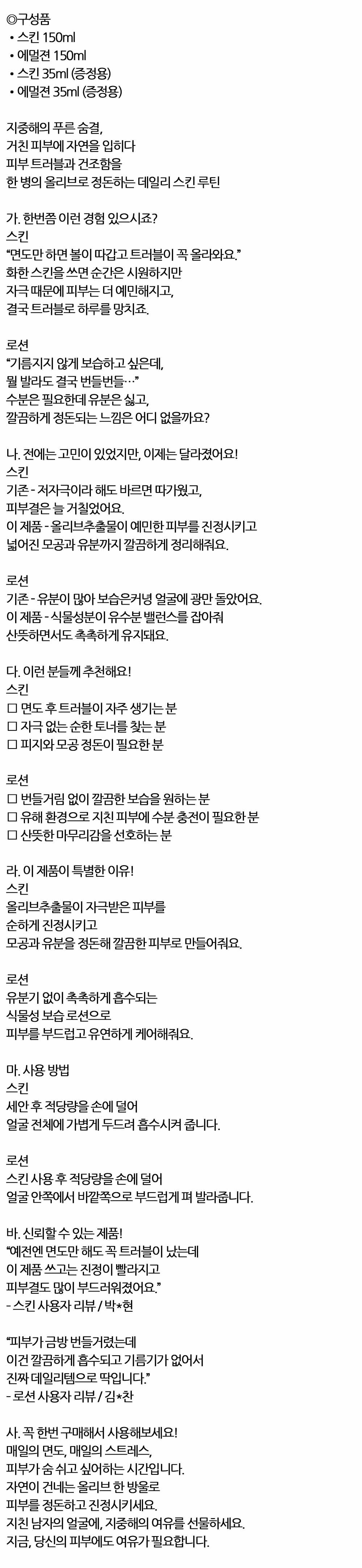 거친 피부에 자연을 입히다 올리브 옴므 남성 2종세트