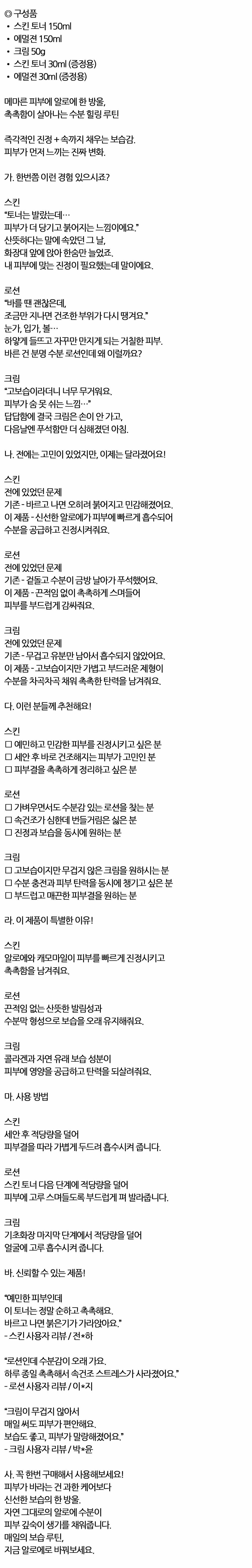 진짜 피부가 원하는 수분 충전 알로에 여성 3종세트