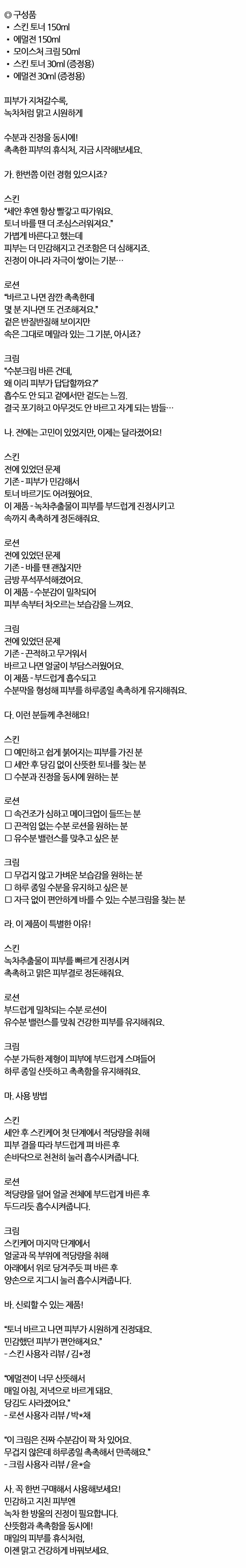 피부가 지쳐갈수록 맑고 시원하게 녹차 여성 3종세트