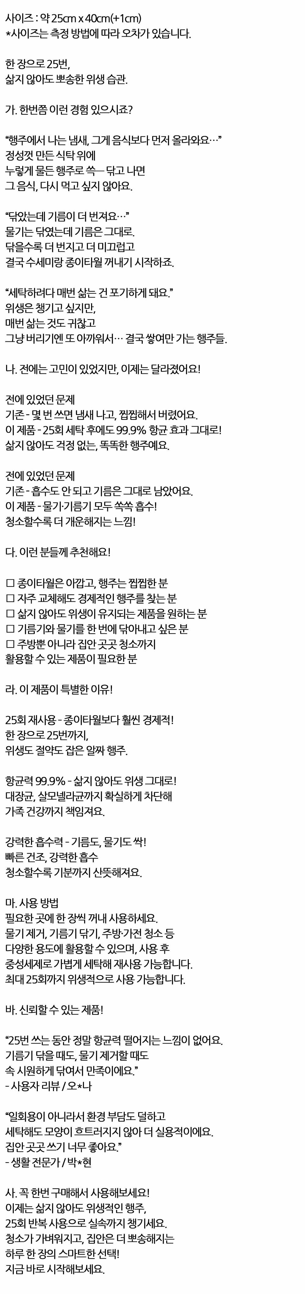 최대 25회까지 사용 가능합니다 빨아쓰는 행주 40매