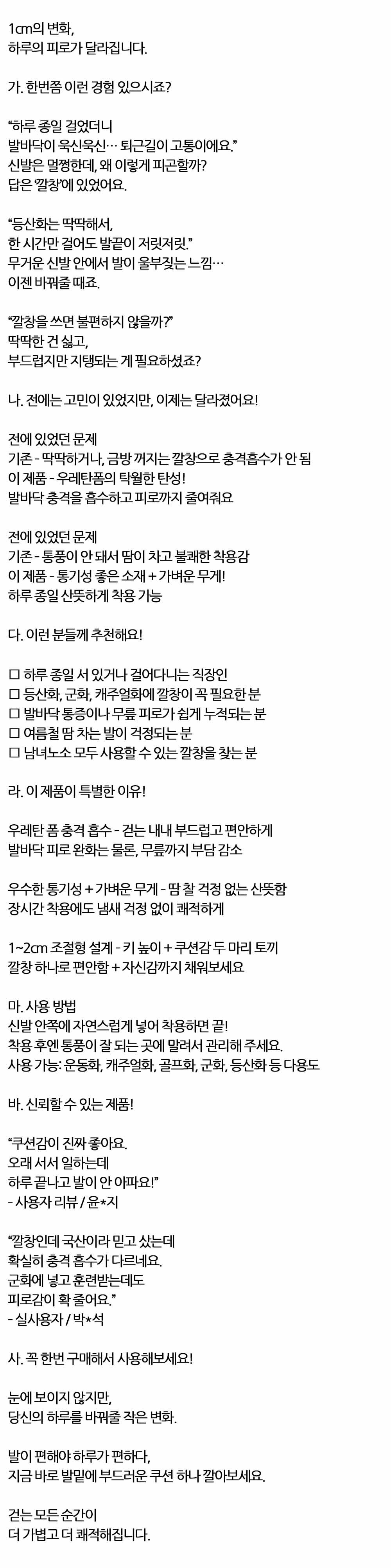 발바닥 충격흡수 피로까지 줄여줘요 우레탄깔창 270cm