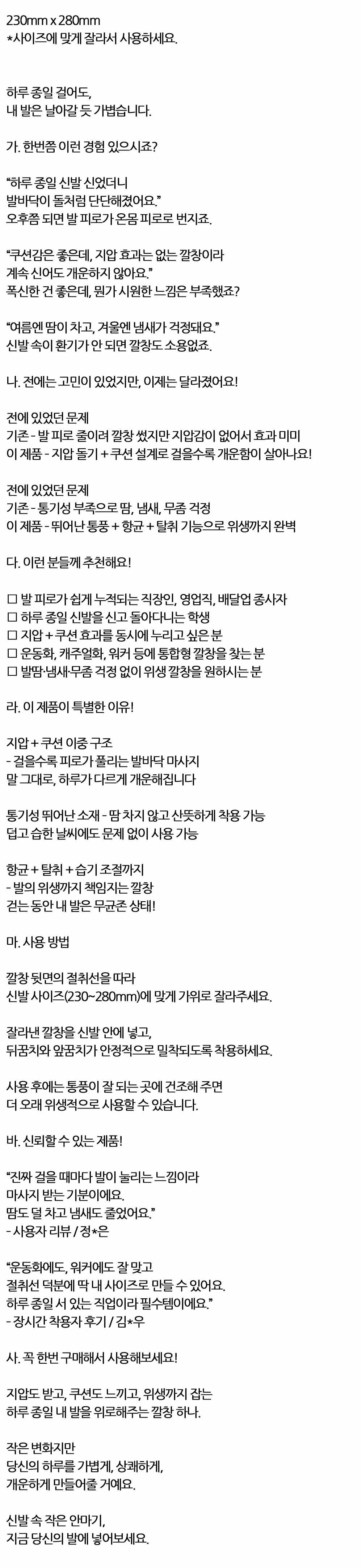 하루종일 걷는 사람들을 위한 지압돌기 쿠션설계 깔창