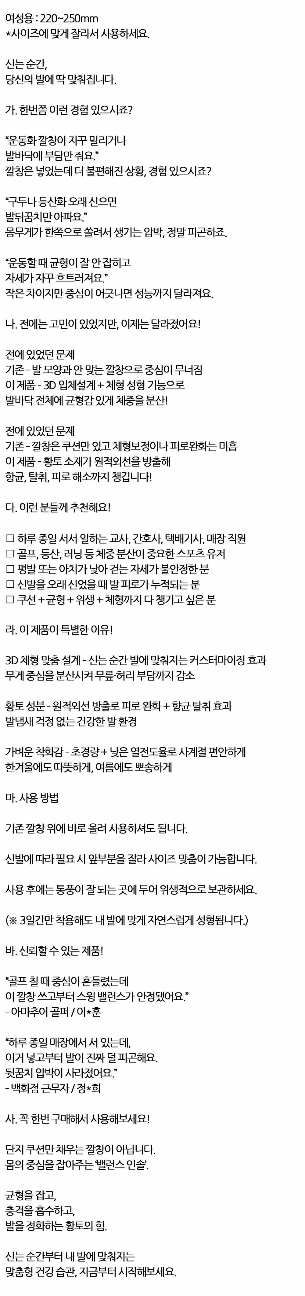 단지 쿠션만 채우는 깔창이 아닙니다 여성용 신발깔창