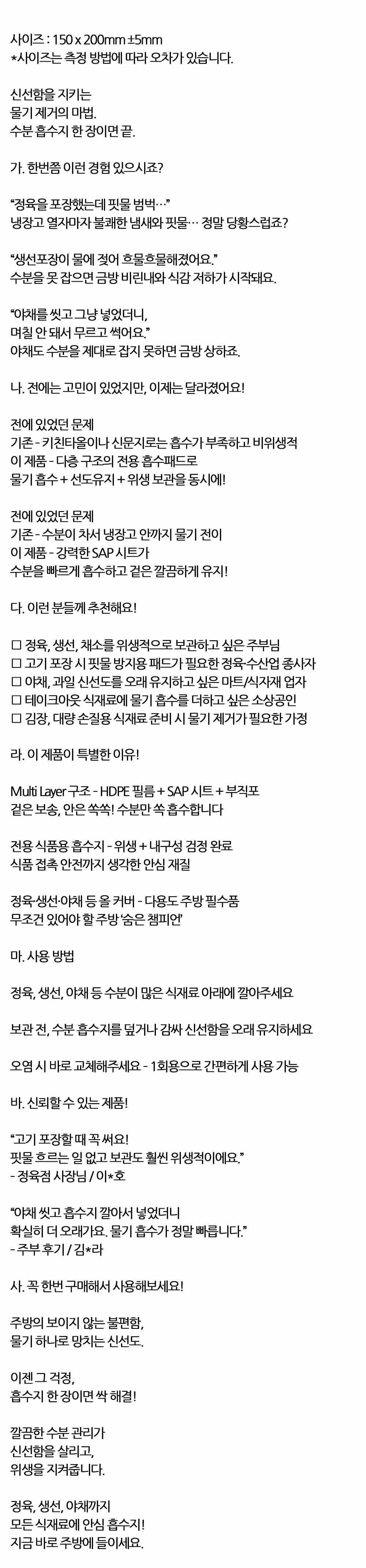 신선함을 지키는 물기 제거의 마법 수분 흡수지 10매