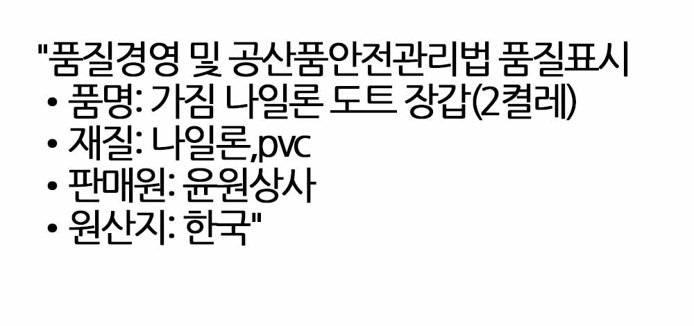 물건이 손에서 빠질 틈이 없습니다 도트장갑 2켤레 M
