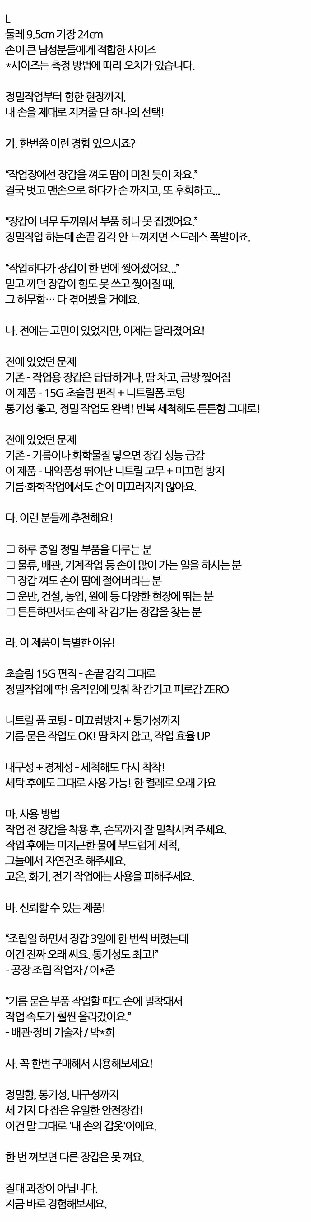 기름작업 손이 미끄러지지 않아요 안전장갑 10켤레 L