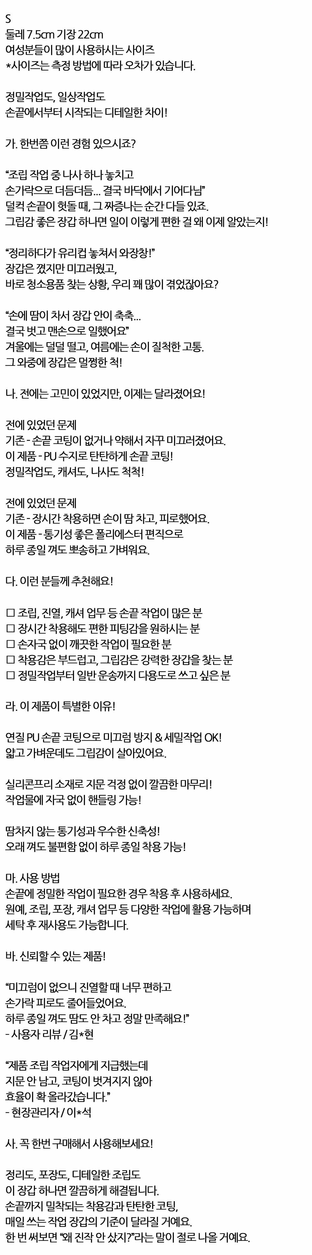 코팅이 없거나 약해서 미끄러졌어요 장갑 10켤레 S