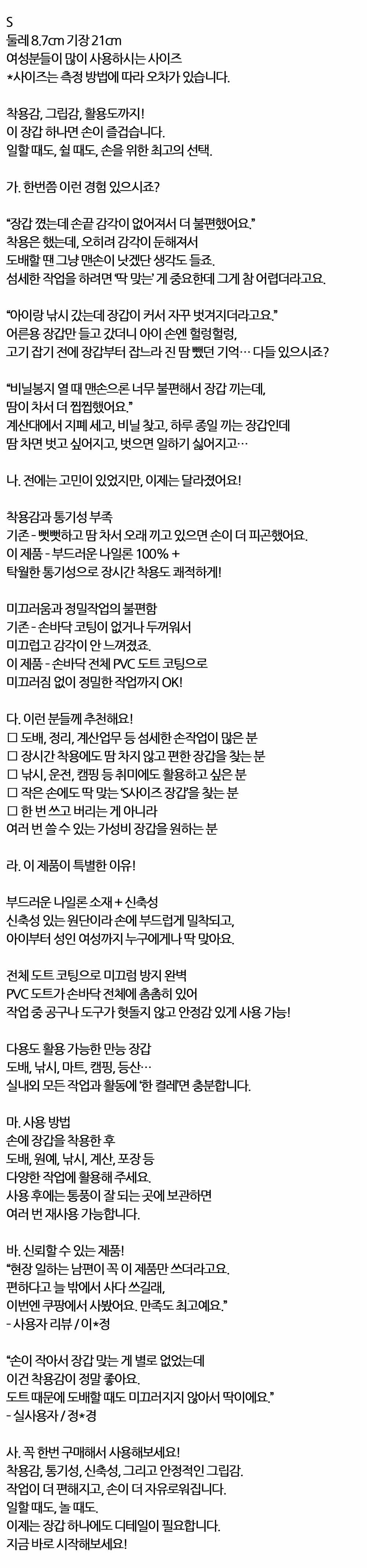 장시간 착용 땀 차지 않고 편안한 작업장갑 10켤레 S