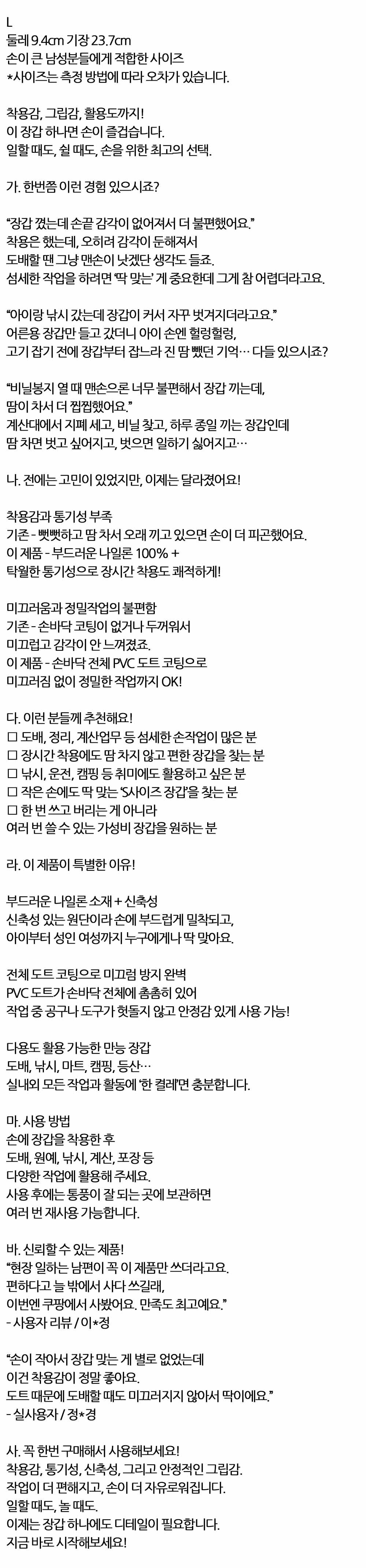 장시간 착용 땀 차지 않고 편안한 작업장갑 10켤레 L