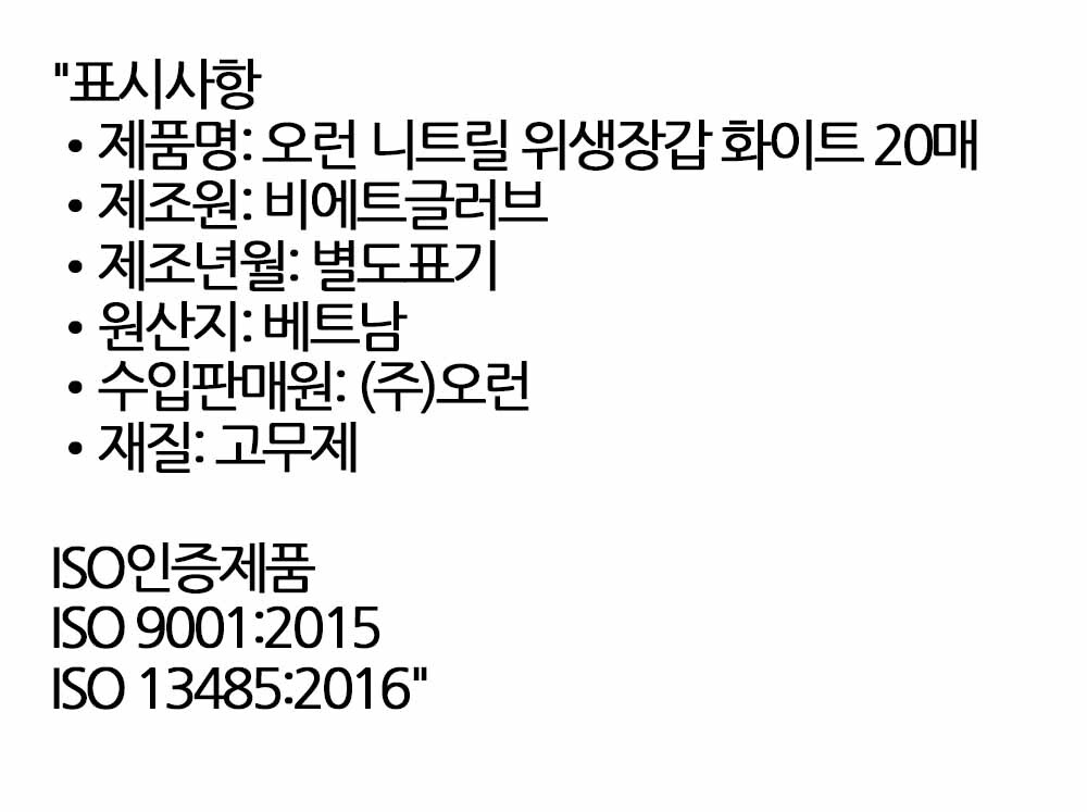 요리 포장 실험 염색 청소 니트릴 화이트장갑 100입 L