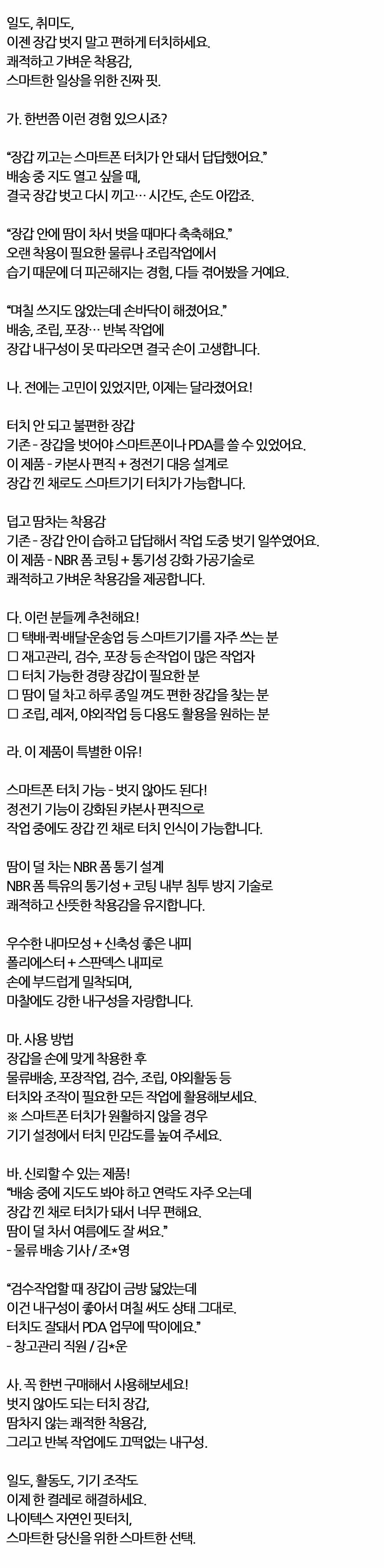 이젠 벗지 말고 편하게 터치하세요 작업장갑 10켤레 L