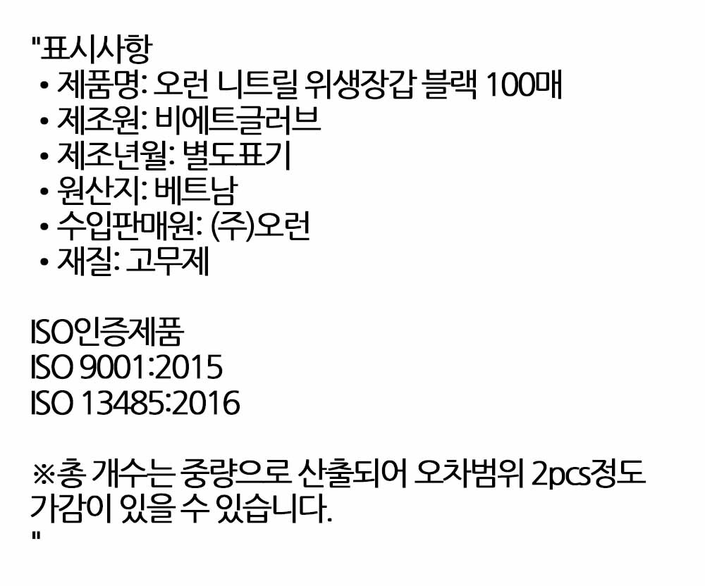 요리 포장 실험 염색 청소 니트릴 블랙 장갑 100입 S