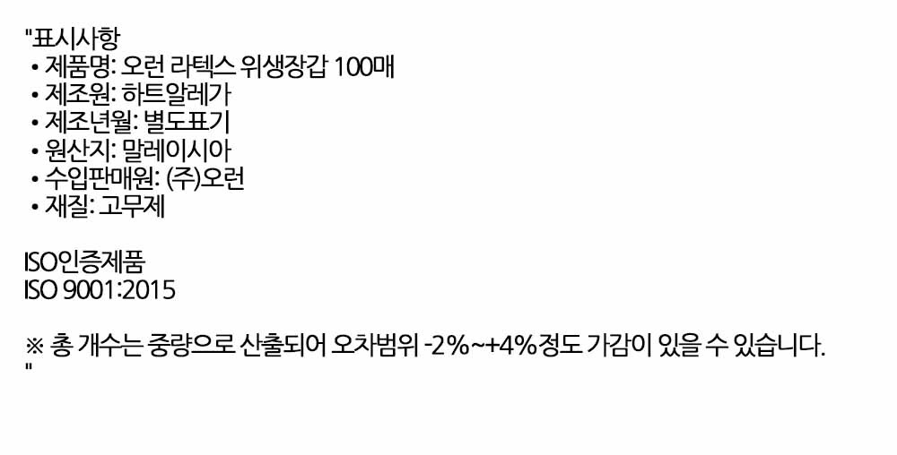 요리 반찬 조리 청소 포장 작업 라텍스 장갑 100입 S