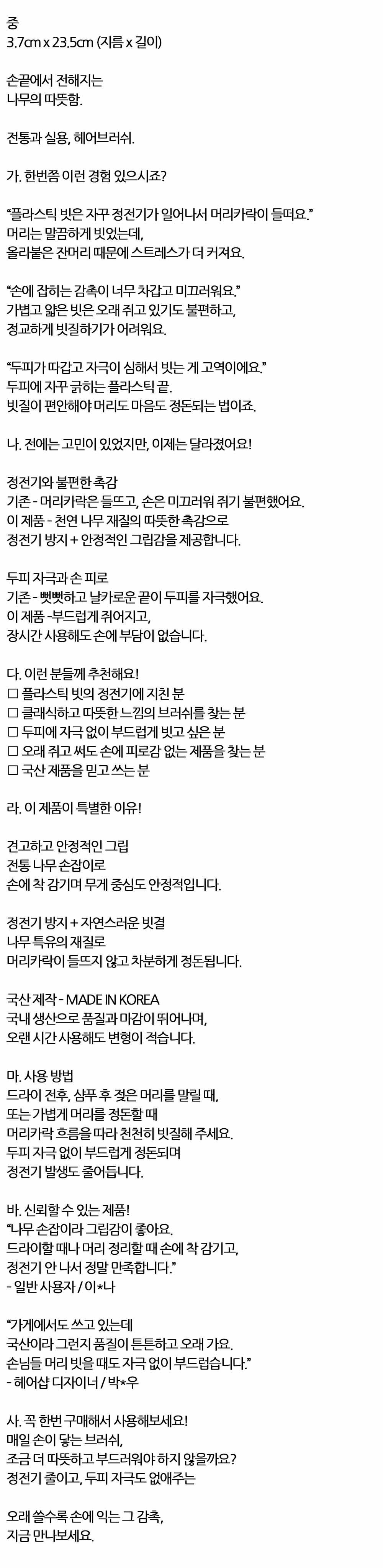 차분하게 정돈됩니다 나무 손잡이 헤어 드라이롤빗 중