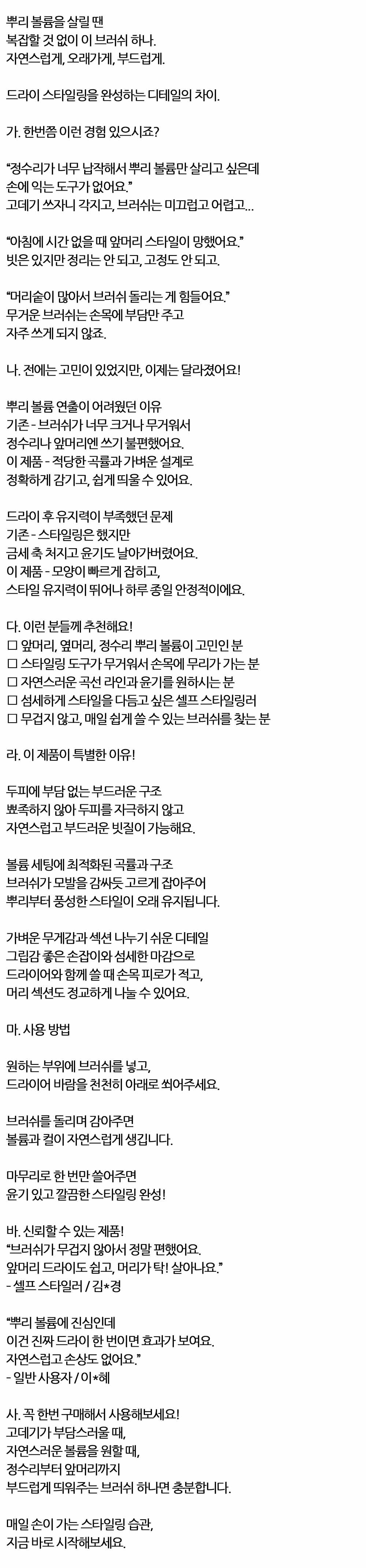 정수리부터 앞머리까지 띄워주는 헤어드라이롤빗 왕대