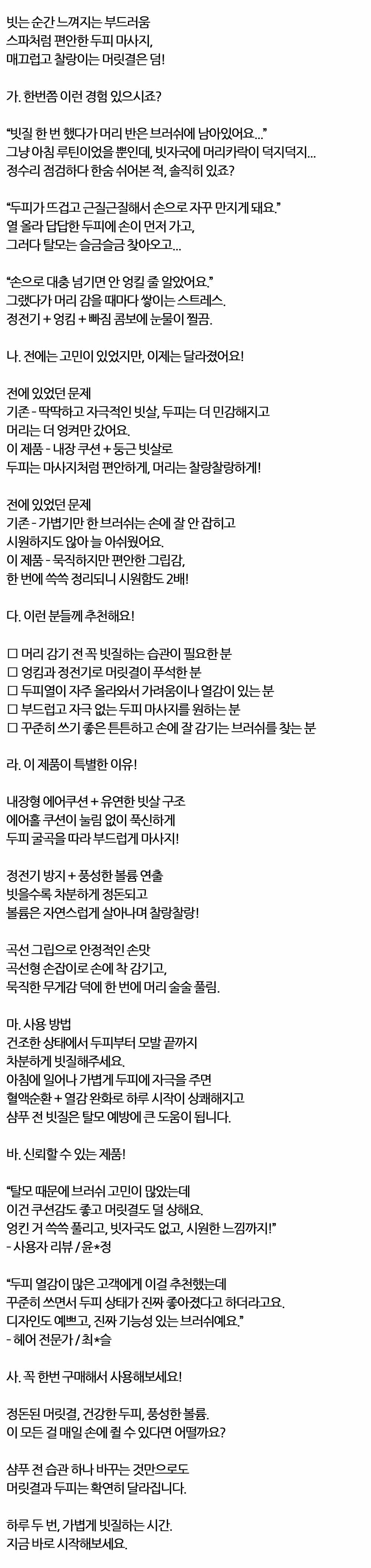 빗는 순간 느껴지는 부드러움 헤어 쿠션 브러쉬 핑크
