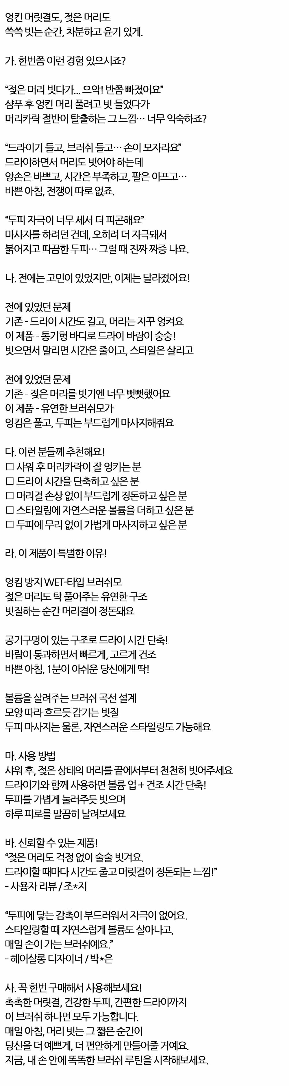 젖은 머리도 걱정 없이 술술 빗겨요 볼륨 헤어브러쉬