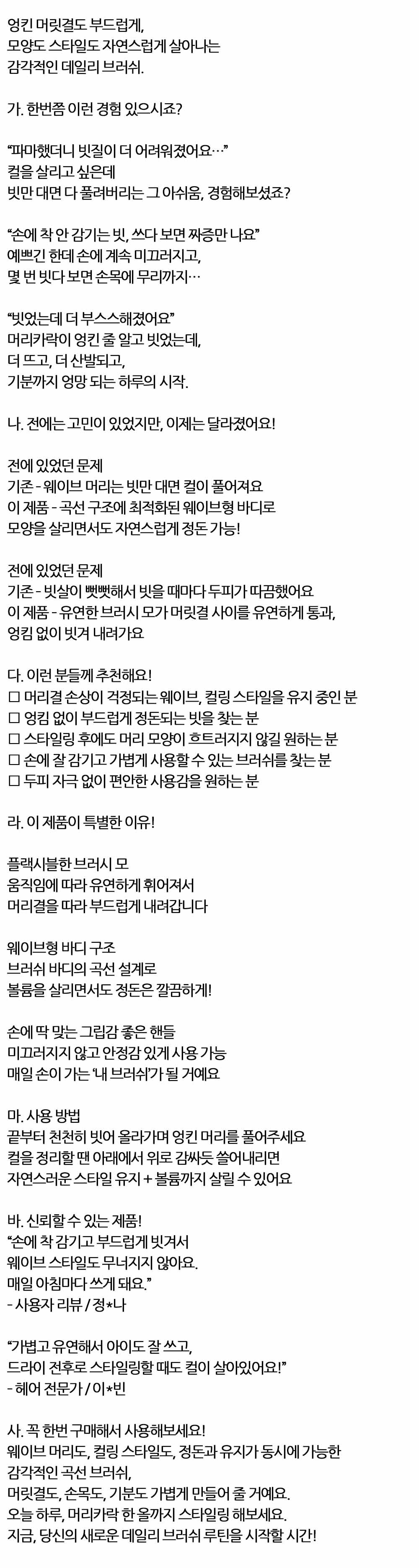 머리결을 따라 부드럽게 내려갑니다 쿠션 브러쉬 블랙