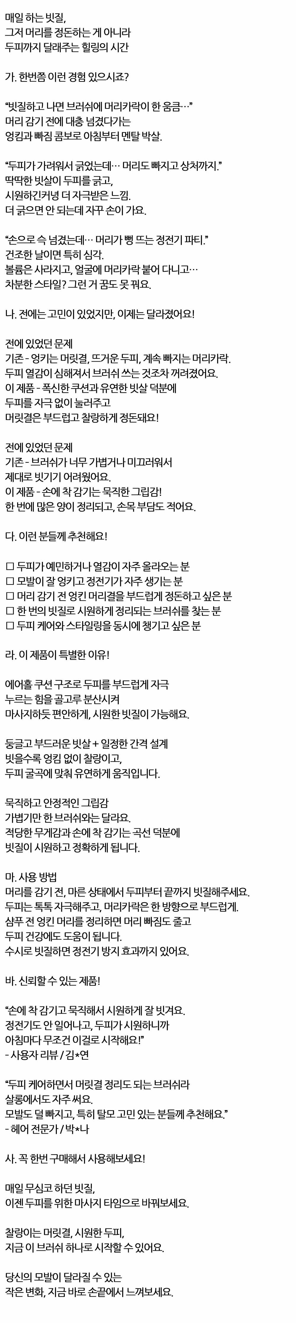 찰랑이는 머릿결 시원한두피 헤어쿠션 브러쉬 블랙 중