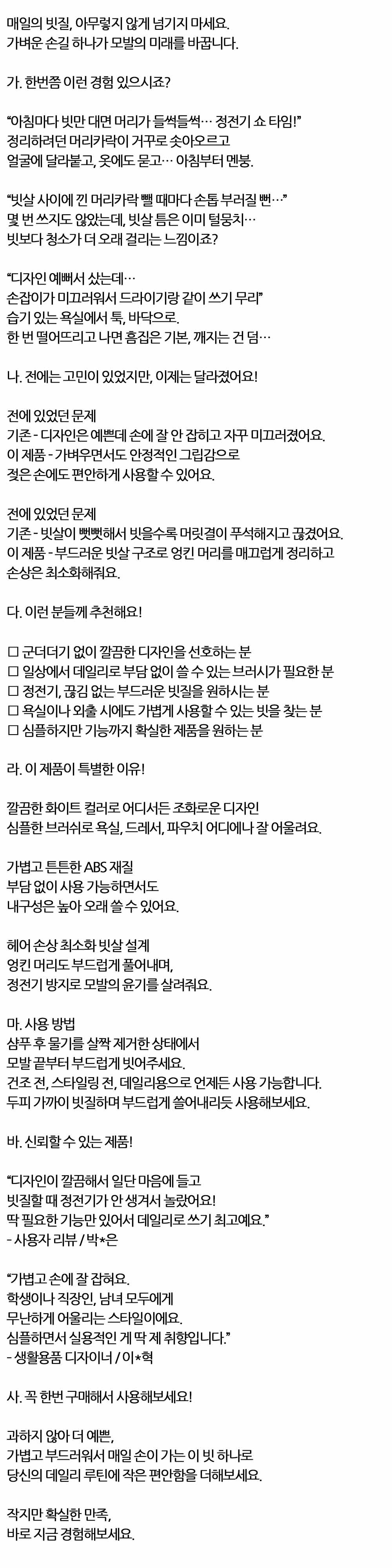 끊김 없는 부드러운 빗질 깔끔한 화이트 헤어브러쉬