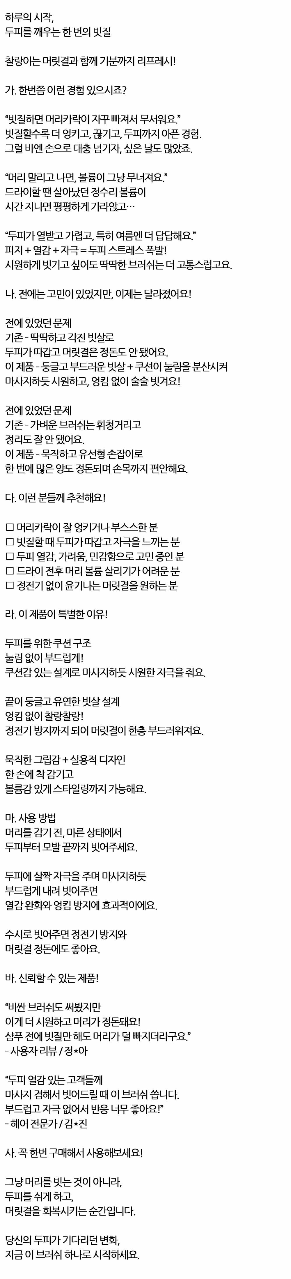 끝이 둥글고 유연한 빗살 헤어 쿠션 브러쉬 핑크 대