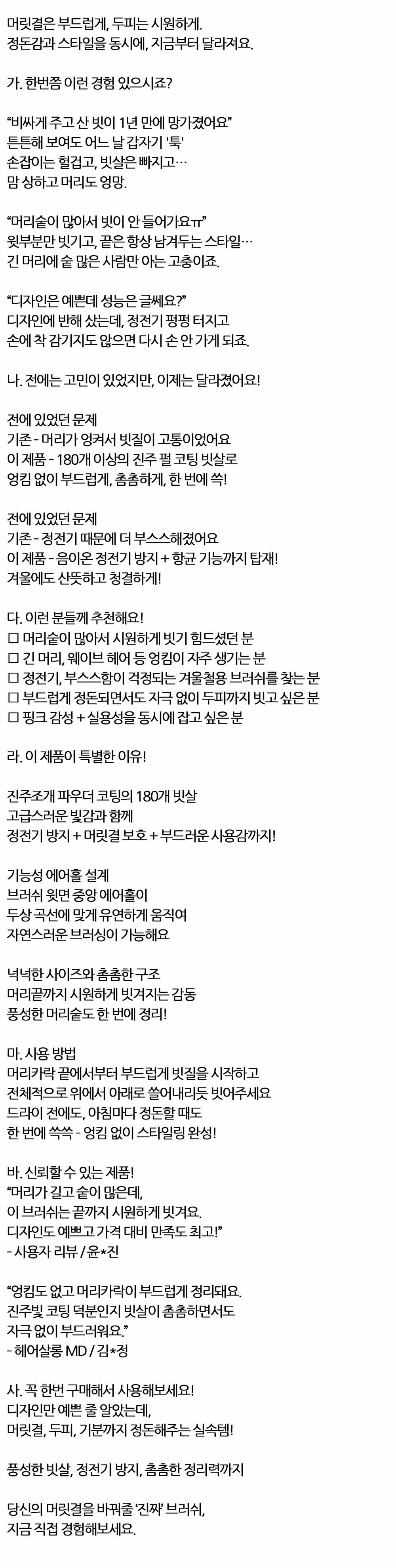 진주조개 파우더 코팅 180개 빗살 헤어브러쉬 퍼플 중