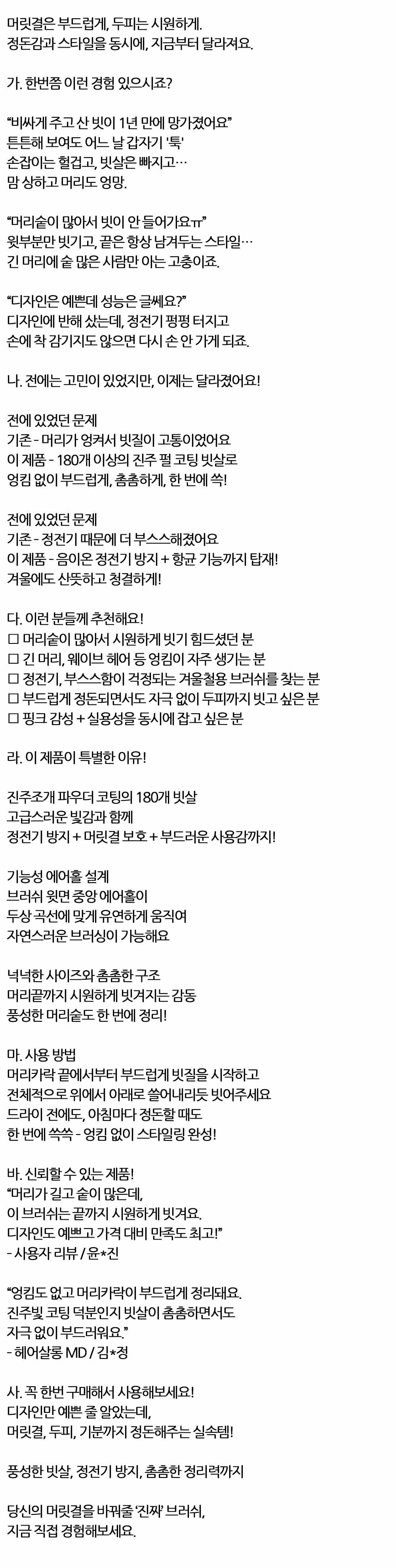 진주조개 파우더 코팅 180개 빗살 헤어브러쉬 핑크 중