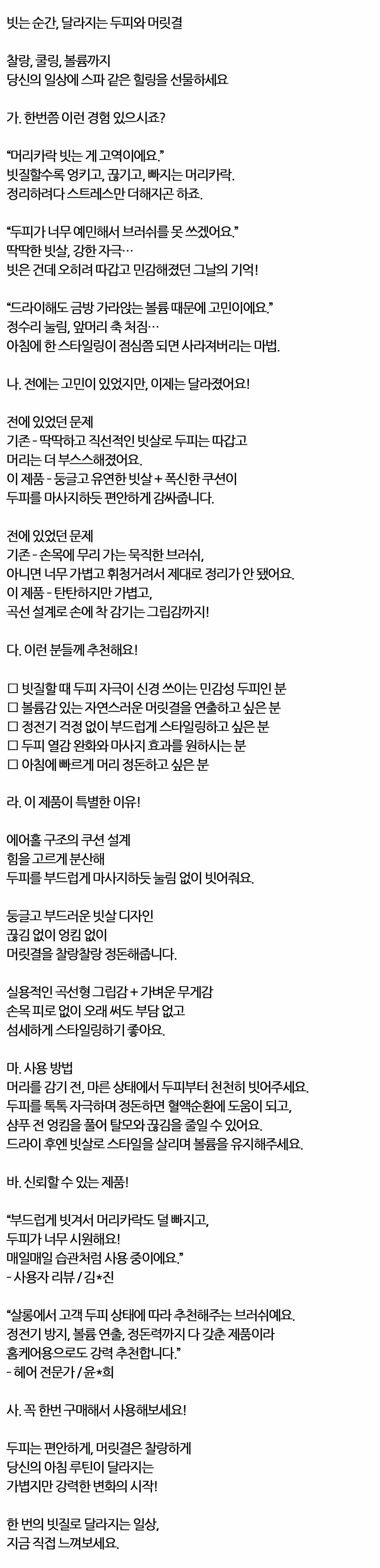 두피 편안 머릿결 찰랑하게 헤어 쿠션 브러쉬 블랙 대
