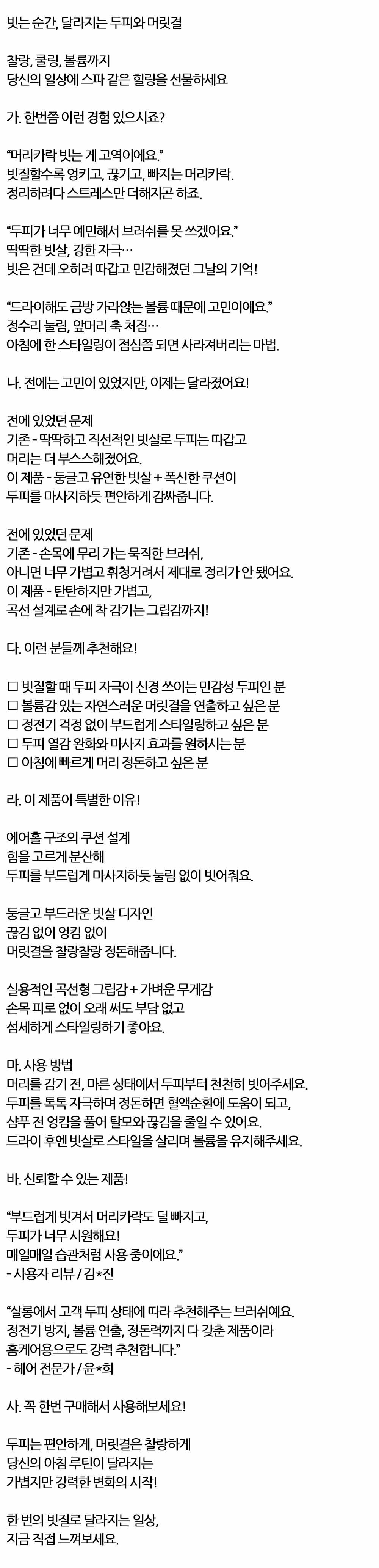 두피 편안 머릿결 찰랑하게 헤어 쿠션 브러쉬 핑크 소