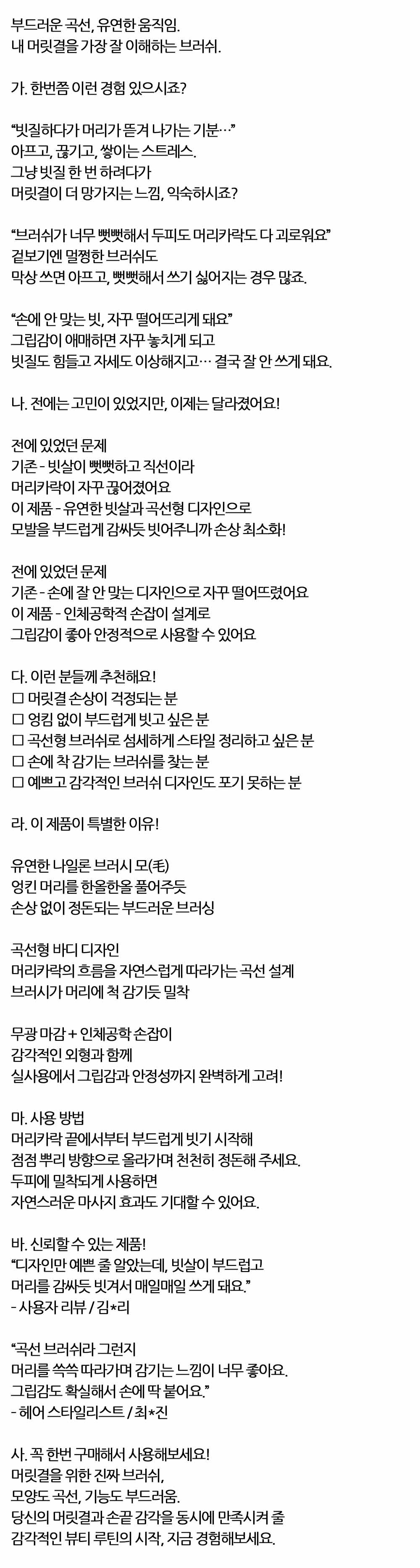 유연한빗살 곡선형 디자인 엉킨머리 헤어브러쉬 블랙