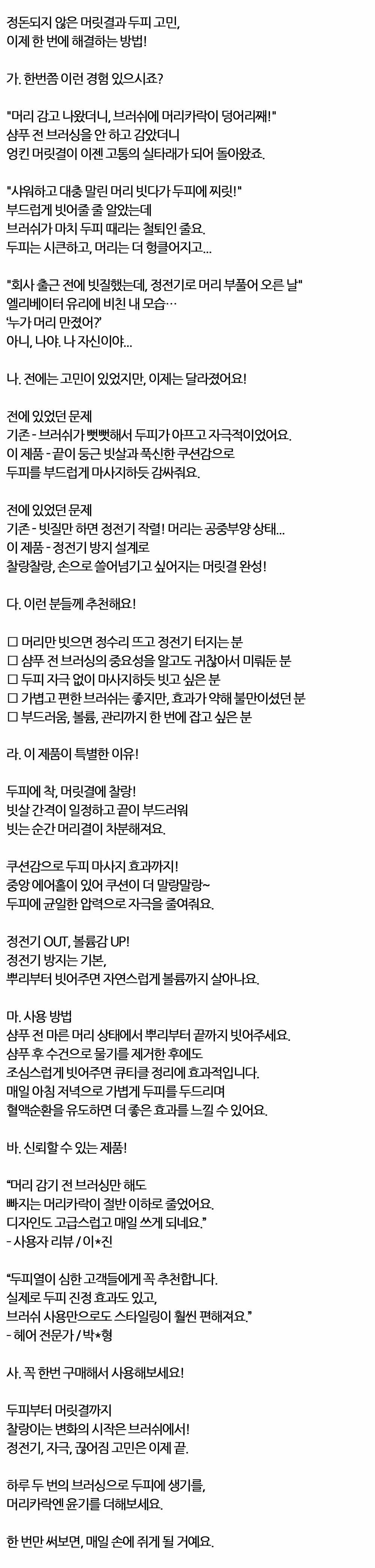 정돈되지 않은 머릿결과 두피 고민 헤어 쿠션 브러쉬