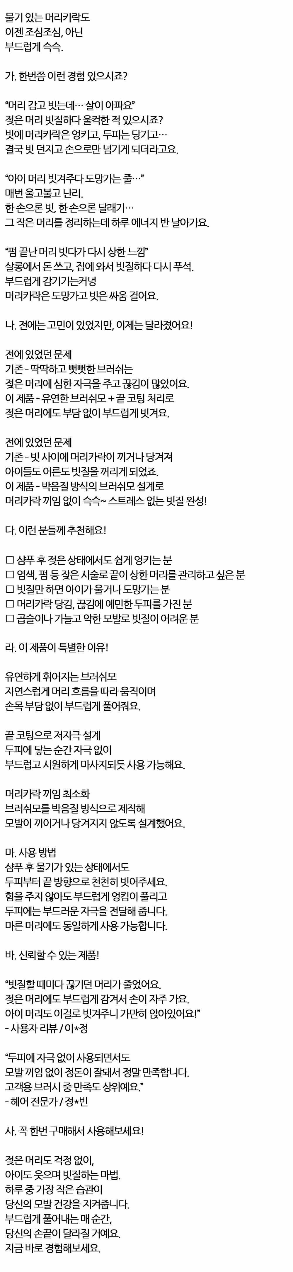 젖은머리 부담없이 부드럽게 빗겨요 헤어브러쉬 핑크