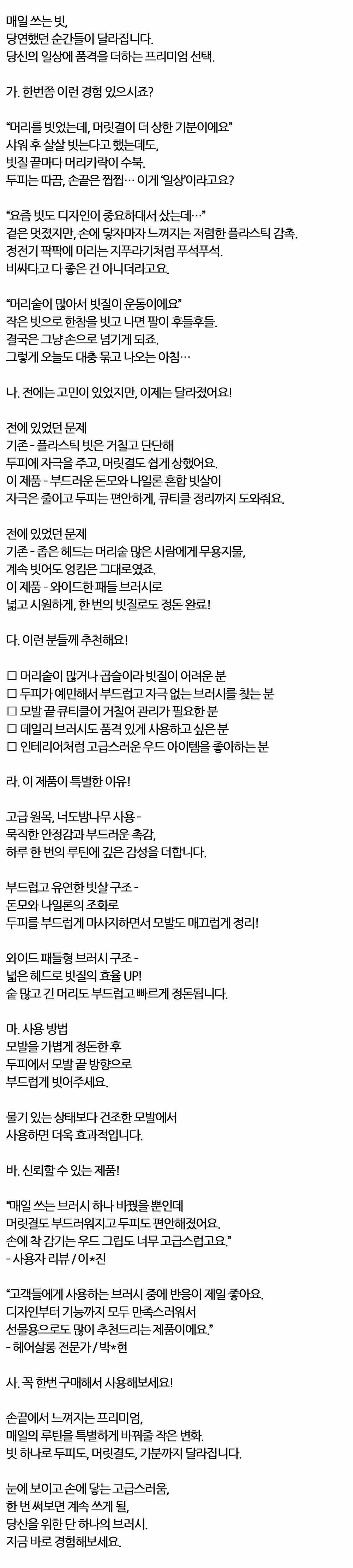 손끝에서 느껴지는 고급 너도밤나무 헤어브러시 대