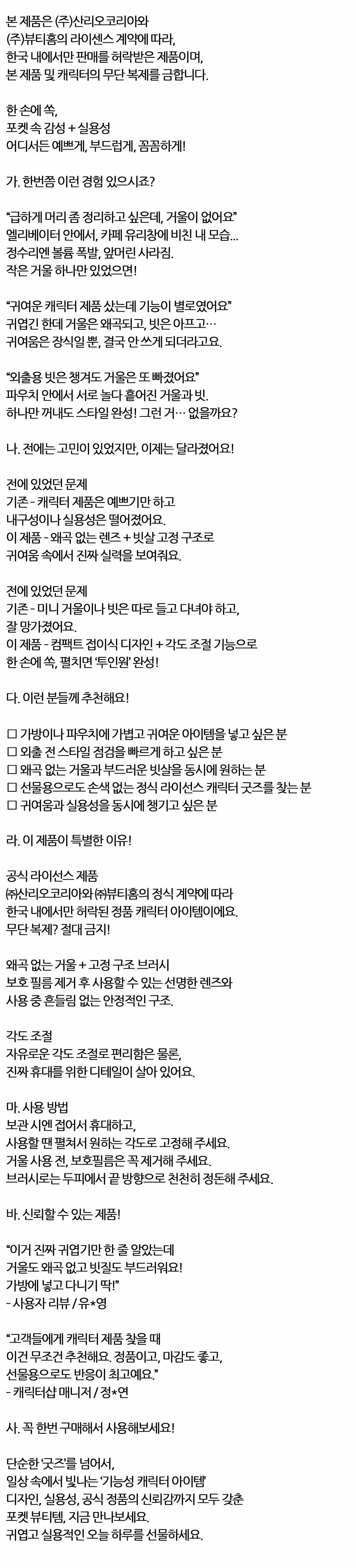 가방에 넣고 다니기 딱 휴대 접이식 빗거울 시나모롤
