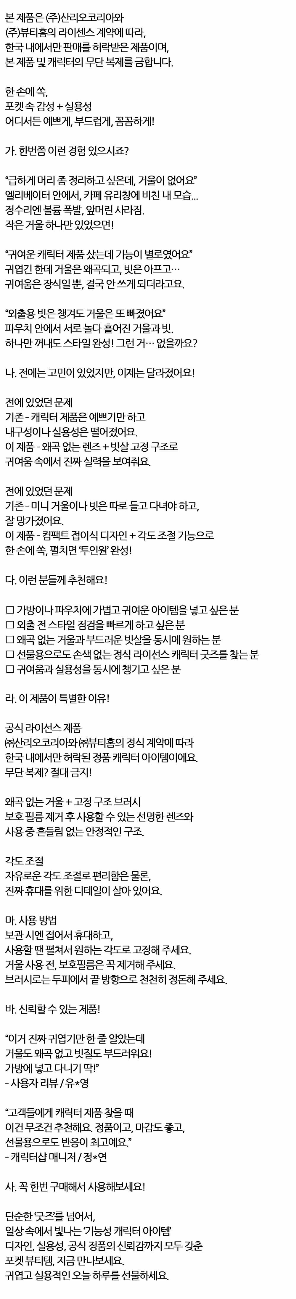 가방에 넣고 다니기 딱 휴대 접이식 빗거울 폼폼푸린