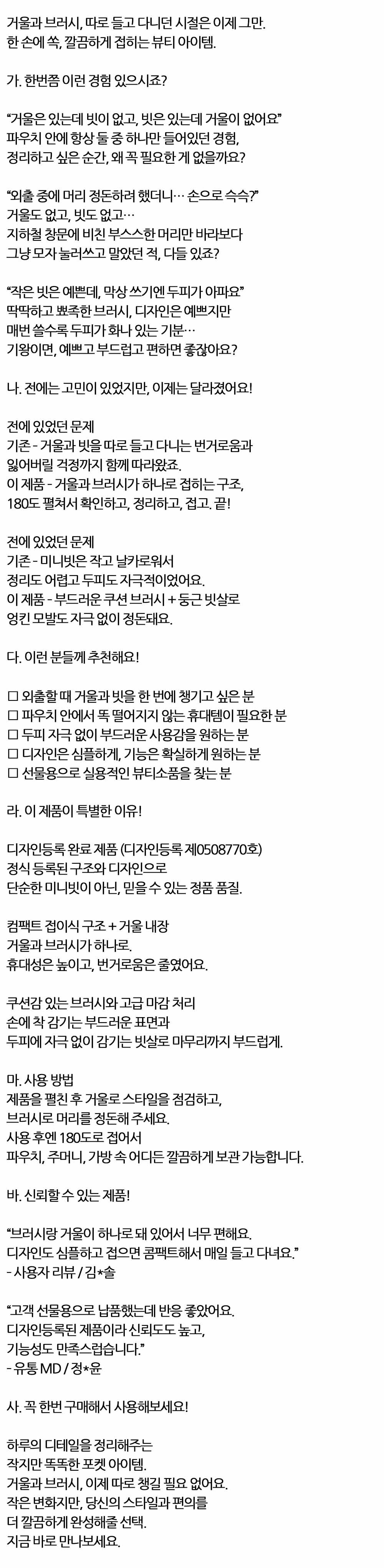 한손에 쏙 깔끔하게 접히는 휴대 거울빗 헤어브러쉬