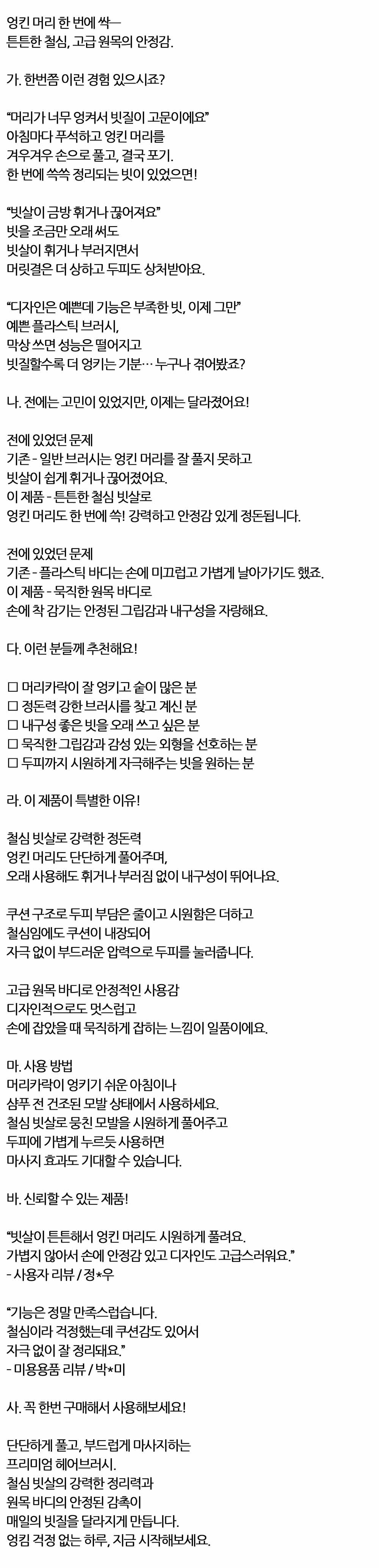 엉킨머리 시원하게 풀려요 원목 철쿠션 헤어브러쉬 대
